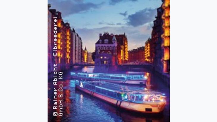 Abendliche Lichterfahrt – Hamburg bei Nacht – einstündige Fahrt auf unseren maritimen Barkassen oder komfortablen Salonschiffen durch die besondere Abendstimmung der Hafenbecken. Bei entsprechender Tide führt die Fahrt durch Fleete und Kanäle der historischen Speicherstadt, mit ihren zauberhaft beleuchteten Brücken und Kontorhäusern.