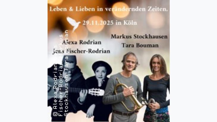 An diesem Abend begegnen wir gleich vier außergewöhnlichen Künstlerpersönlichkeiten. Und zwei starken, kreativen Paaren: Markus Stockhausen und Tara Bouman, sowie Alexa Rodrian und Jens Fischer-Rodrian.